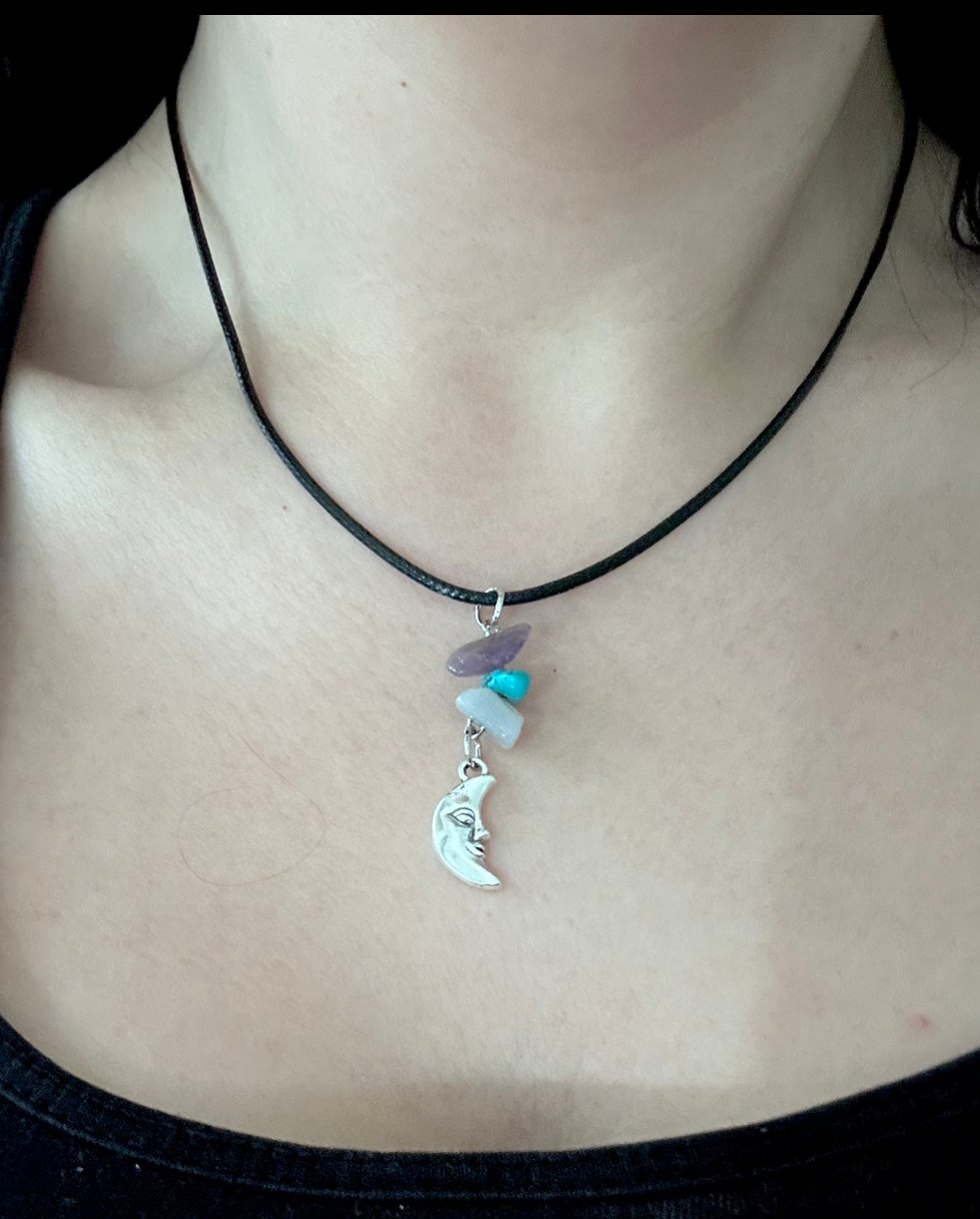 Silver Moon & Gemstone Necklace